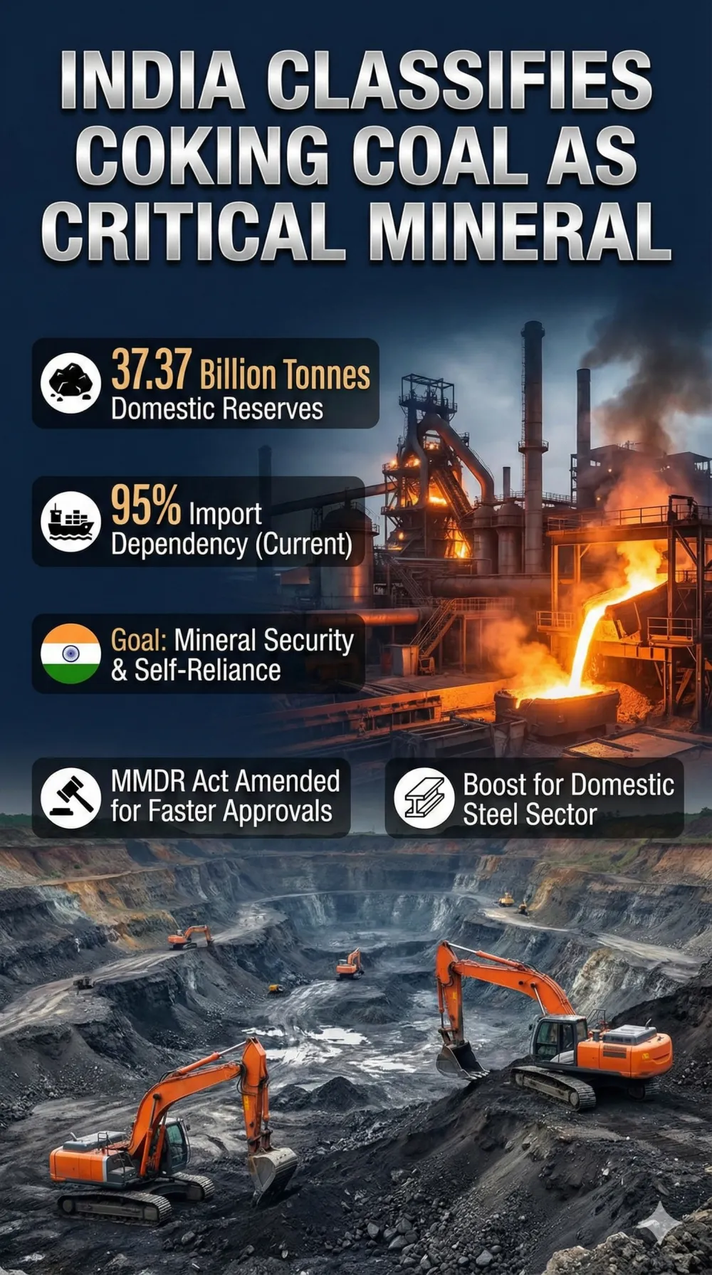 In a decisive move to strengthen India's industrial resilience, the Central Government has officially designated Coking Coal as a "Critical and Strategic Mineral." This notification, issued under the Mines and Minerals (Development and Regulation) Act, 1957, aligns with the nation's ambitious Viksit Bharat 2047 goals. The policy shift aims to aggressively reduce the steel industry's heavy reliance on foreign imports by unlocking domestic mining potential through expedited approvals and regulatory reforms.
